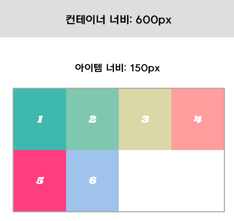 이 상태에서 컨테이너 너비가 늘어나면 아이템 너비도 그에 맞춰 옆으로 쭈우욱 늘어납니다.