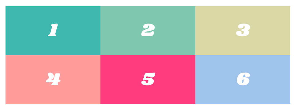 .container { display: grid; grid-template-columns: 150px 150px 150px; grid-template-rows: 150px 150px; }그러면 위 이미지처럼 아이템들이 격자 형태로 가지런히 놓인 걸 볼 수 있습니다. 뭔가 테이블 같군요!